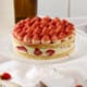 Distribuite la crema Tiramisù sopra il confit di fragole a spirale, partendo dal centro verso l'esterno.